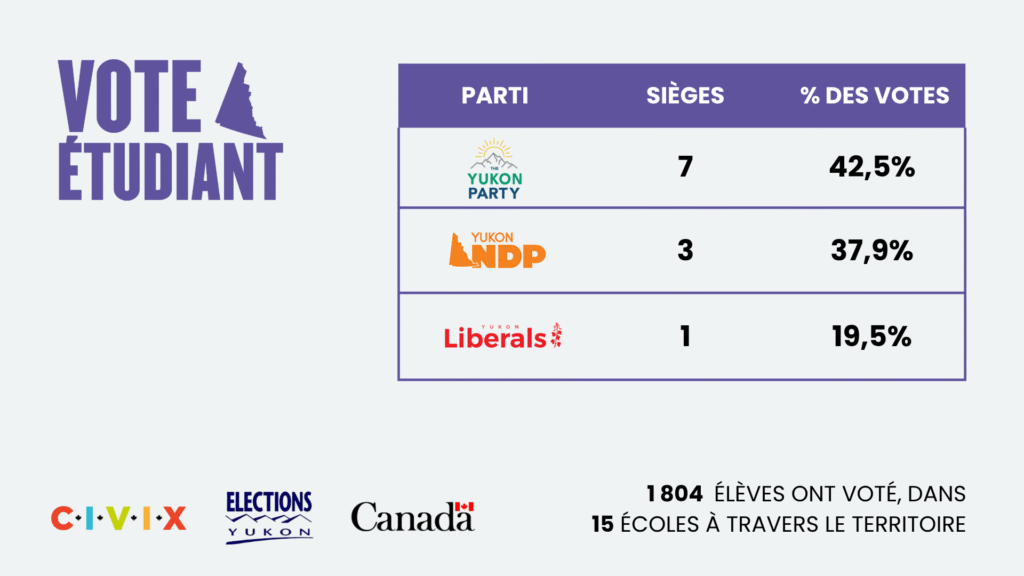 Plus de 1 800 élèves du primaire et du secondaire ont participé au Vote étudiant Yukon, en lien avec les élections territoriales de 2025.