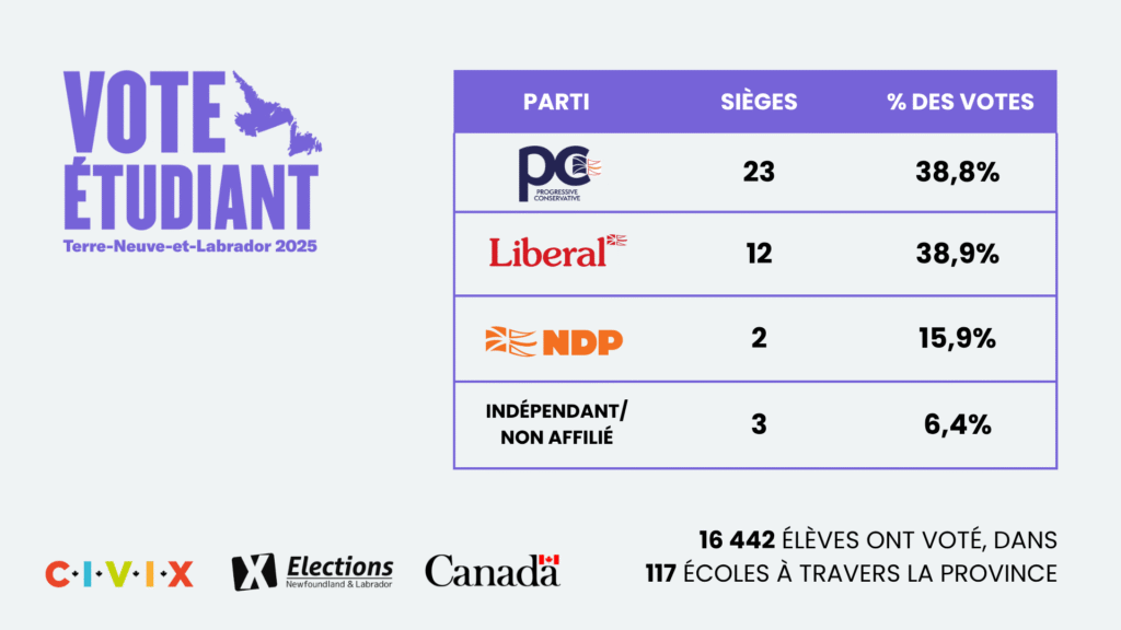 Plus de 16 000 élèves du primaire et du secondaire ont participé au Vote étudiant Terre-Neuve-et-Labrador, en lien avec les élections provinciales de 2025.